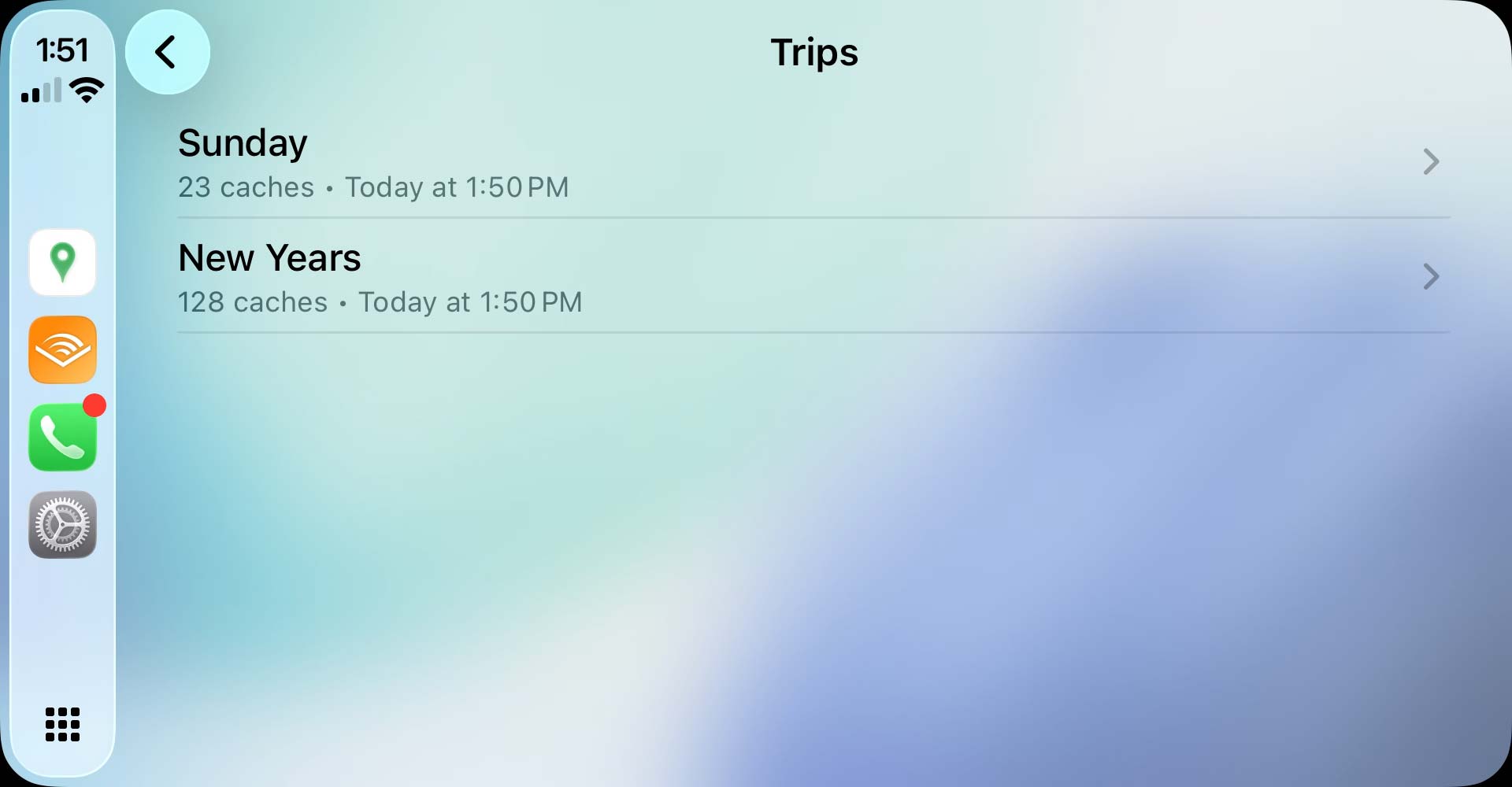 - Tap a Trip to view its caches