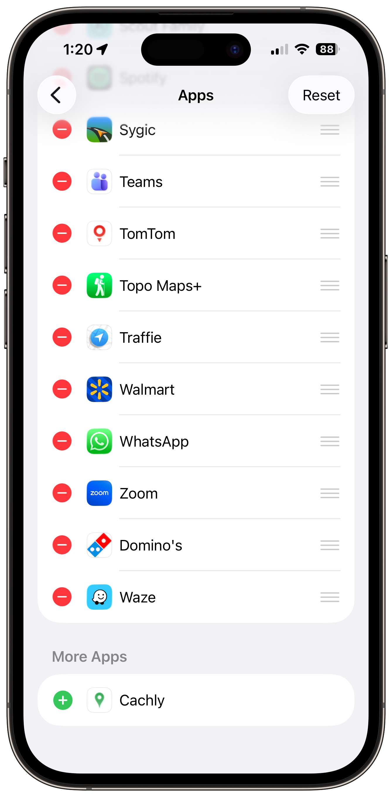 - In CarPlay, go to Settings > Sorting and select Custom